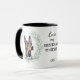 "LOVE MY DOBERMAN PINSCHER DOG" declares this mug for the proud Doberman owner. Each side of the mug has a beautiful portrait of a Dobie framed by soft green watercolor eucalyptus leaves. Between the two images is the text, which may be easily customized, or even removed by you, and your monogram or name.