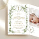 Eucalyptus Gold Cross Wreath Girl Baptism Invitation