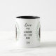 "LOVE MY GORDON SETTER DOG" declares this mug for the Setter dog owner. Each side of the mug has a watercolor portrait of a beautiful Gordon Setter framed by soft green watercolor eucalyptus leaves. Between the two images is the text, which may be easily customized, or even removed by you, and your monogram or name.