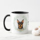 "LOVE MY MINIATURE PINSCHER DOG" declares this mug for the Pinscher dog owner. Each side of the mug has a portrait of a beautiful Miniature Pinscher framed by soft green watercolor eucalyptus leaves. Between the two images is the text, which may be easily customized, or even removed by you, and your monogram or name.