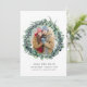 An elegant botanical Save the Date card features a sage green eucalyptus wreath with navy blue privet berries. This rustic design is perfect for an autumn or winter wedding. It frames your favourite couple's photo. Save the Date, your names, wedding date and location are on the front. You can add additional information on the back. This save item is part of the Eucalyptus collection. It contains many DIY wedding stationery templates that will let you easily create a beautiful wedding invitation suite. You should see a link to it on this page. If you don't see the link or need help with an item, please contact me.