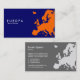 A business card with a map of Europe. Company details on the front with name and contact details on the back on a grey tonal version of the design.