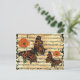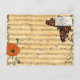 Beautiful Postcard with European Butterflies and Poppies. A backdrop with aged sheet music gives it a warm vintage feel.