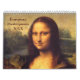 European Masterpieces Calendar with paintings; -January Mona Lisa Leonardo da Vinci 1505 -February Still Life With Strawberries Unknown 17th Century -March Joan of Arc Jules Bastien-Lapage 1879 -April The Finding of Moses Sir Lawrence Alma-Tadema 1904 -May Eiffel Tower Henri Rousseau 1898 -June Tiger on the Watch Jean-Leon Gerome 1884 -July Market at the New Mosque, Istanbul Karl von Eckenbrecher 1873 -August Napoleon Bonaparte Before the Sphinx Jean-Leon Gerome 1868 -September Le Ponte de l'Europe Gustave Caillebotte 1876 -October Tiger and Cubs Jean-Leon Gerome 1884 -November Riding Couple Wassilly Kandinsky 1907 -December The Consecration of the Emperor Napoleon Jacques-Louis David 1807