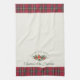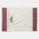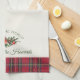 stylish red black tartan,rustic christmas custom monogram,personalised customised kitchen towel,personal name check pattern,scottish checked chequered dishcloth,add your own royal text,merry xmas family surname,fancy plaid initialled initial,classic traditional european bird,christmassy xmasy british robin