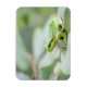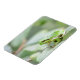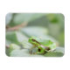 Rectangular photo magnet with a green european tree frog, hyla arborea, sitting on leaves creating a green background. Taken in the Netherlands.