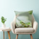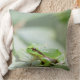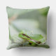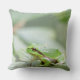 Throw pillow with a green european tree frog, hyla arborea, sitting on leaves creating a green background. Taken in the Netherlands.