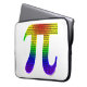 Evan, age 5, wanted a Pi design with a rainbow colouring. I made 2 designs for him to choose from; this is the second. It features the digits of Pi in black, on a rainbow-coloured Pi.