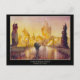 A romantic evening scene. Couple in love on the Charles Bridge in Prague, Europe . Illustration painted by myself with watercolors.