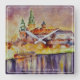 The Old Town of Krakow: View of the Wawel Royal Castle and Vistula River in foreground, Poland, Europe . Illustration painted by myself with watercolors.