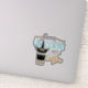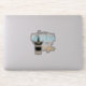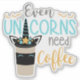 Here's a cute contour sticker that declares "Even Unicorns Need Coffee". A unicorn with stars emerges from a coffee container. Colours used include teal blue, grey, and orange.