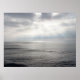 A calm sea under a darkening sky. The rays of the sun filter through the clouds. Photograph taken at Porthleven in Cornwall.