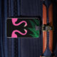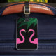 This tropical luggage tag is decorated with a fuchsia flamingos and palm leaves on the front, and all your personal information on the back, making it perfect for your next vacation.