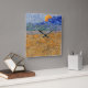 The moon, the sun and the stars were important symbolic elements for Van Gogh who equated their radiating light to religious precepts surrounding resurrection, redemption and salvation. The moon is just rising over the Alpilles, illuminating the wheat sheaves in the foreground. Van Gogh spends a long time working on the canvas. In the final phase, he paints a maze of small, light purple brushstrokes over the scene to enhance the nocturnal light effect. Over time, these have gradually discoloured to much whiter stripes, making the scene less ‘nocturnal’ than he had intended.
