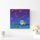 An owl cuddles with it's little one under a twilight sky of twinkling stars. Original Artwork by Night Owl's Menagerie, 2010.