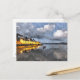 A beautiful watercolour of the coastal harbour Welsh village of Aberdyfi. Clouds and boats reflected in the evening tide and lights shine from buildings.