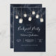 Celestial star filled night sky with hanging candlelight mason jars backyard party invitations. Great for a graduation, retirement, birthday, shower, engagement party or any outdoor backyard party! Dark midnight blue watercolor background with scattered stars.