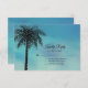 A large palm tree lit up with string lights accents this tropical wedding RSVP on a watercolor turquoise background, making it perfect for destination, Caribbean, Hawaiian, Florida, tropical, poolside, summertime or beach wedding. Coordinating items can be found in the String Lights Palm Tree Wedding Collection. If additional items are needed, just contact us with your request at prettyfancyinvites@gmail.com