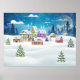 Evening winter village landscape with snow covered poster