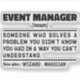 Funny Event Manager Sayings "Event Manager Someone Who Solves A Problem You Didn't Know You Had In A Way You Can't Understand". Grab this Funny Event Manager design as a funny gifts for an awesome mum, dad or friend.