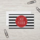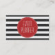 This chic & classy event planner business card features a classic black and white horizontal striped background. On top of the background is a bright red decorative circle with a customisable text that reads "Event Planner". The back of the card is simple white with room for your name, job title & contact details. This is the ideal business cards for anyone in the event or wedding planning industry.