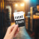 Event Staff ID Badge. Modern corporate black and white design with easy to read bold font. Personalize this event staff template, easily change text and colors in this design.