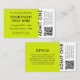 A simple concert or other event ticket template in a modern typography in a minimalist style in simple black on a vibrant lime green background. The template can easily be customised with your event details including date, time, venue and other custom ticket or event information (such and price, terms, arrival details and your event program). You can also easily upload your event QR code to the template for further information about the event from your own website.