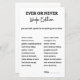 This product was fantastic can put much better than I was anticipating, I was expecting flyer paper but it came on the wonderful glossy front Matt back thick card paper, I am so happy with it. It’s small enough to fit into my wedding invitation envelopes and not crush anything either, but apart from my own spelling mistake I missed with doesn’t matter, it’s perfect. The print was excellent perfect and glossy no smudges in either side of the print, I am over the moon on how it turned out.