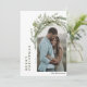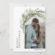 Photo Holiday Card featuring an arch template for your photo with evergreen florals. Customise with your information. Click "click to customise further" to change the font style, size or colour.