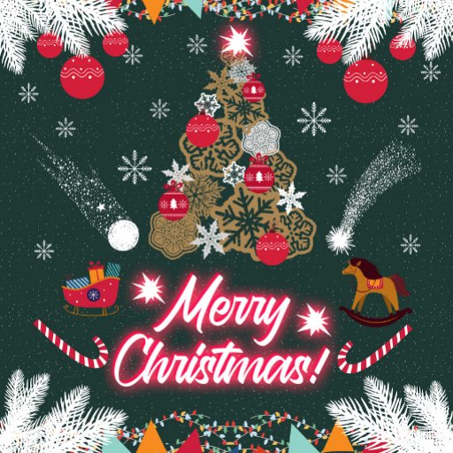This is joyful Christmas design with golden Christmas tree, Christmas lights, snowflakes and dark green background with thousands of stars.