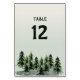 Elements: watercolor painting, gradient background, fun outdoorsy serif and script typography. Colours: hunter green, forest green, white, off white, black Themes: mountains, forest, nature, camping, hiking, outdoorsy, rustic, whimsical, botanical, woodland, country. Collection: Evergreen Mountain Forest Green White Black Wedding Suite. Product Type: Table Card