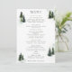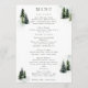Elements: watercolor evergreens, pine, fir, dotting a unique mountain glen. Classic serif fonts for text. Colours: green, highland, hunter, moss, teal, white, black. Themes: winter, mountians, outdoor wedding, country, rustic, hiking, woodsy, outdoorsy. Collection: Evergreen Mountain Glen White Green Black Wedding Collection Product Type: Menu