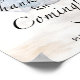 My thoughts on this product was excellent. Well printed in a gloss finishing and just the size l ordered. It arrived in good condition and am overall satisfied with the product. The printing turned out great. I was quite surprised with the finishing touch to the poster. The semi gloss was just right and a perfect size to display at the wedding.