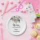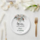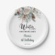 Watercolor Elegant White Roses Winter Onederland First Birthday Paper Plates.