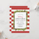 Host a holiday open house during the Christmas season with this festive evergreens and stripes invitation. Your personalised text is surrounded by a frame of winter evergreens and pine cones with a background of cheerful red and white stripes. The modern text layout is easy to read and personalise with your details.