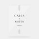 This sleek black cards and gifts wedding acrylic sign from the Everly Collection features crisp white type, geometric art deco accents, and editorial spacing. The simple thin triple-line motifs frame elegant text for a refined, modern minimalist, evening-ready look.