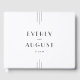 This modern classic wedding guest book from the Everly Collection features a minimal layout, subtle art deco lines, monochrome palette, and elegant fonts. It creates an airy, timeless feel.