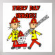 Two cartoon stick figure fire fighters and a dalmation dog in a fire hat on Every Day Heroes Firefighters T-shirts, mugs, magnets, cards, keychains, ornaments, journals, pillows, tote bags, hoodies, mousepads, and other firefighter apparel and gifts.