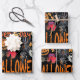 Gift Wrap Wrapping Paper set of 3 sheets printed with Everyday Is Halloween original artwork design illustration by TheFabricSeal highlights together in this cute collage some of our favourite design artworks for Halloween including pumpkins, ghost, fairy, the invisible man, Frankenstein, vampire, fairies, bats, spiders and candy corn. Goth, gothic, victorian, elegant, fun, fully, silly, humour, humourous. Scare, scary, scared, fright, frightening, ghoulish, creepy, spooky. Party, celebrate, celebration, festive, partying, trick or treat, treats, candy.