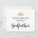 This cute godfather proposal flat card, with it’s gold crown, is a sweet way to ask that special man in your life to be your princess’s godfather at the baptism or christening of your daughter.
