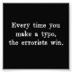 If you see something, say something. That includes typos. Everytime you make a typo, the errorists win. Add a note of seriousness to you typing skills. Data entry is not to be taken lightly.
