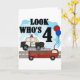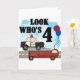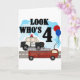 A police cruiser, fire engine, balloons, and text that reads "Look Who's 4" is featured on our Everyday Heroes 4th Birthday design.