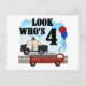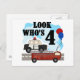 A police cruiser, fire engine, balloons, and text that reads "Look Who's 4" is featured on our Everyday Heroes 4th Birthday design.
