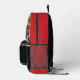 This custom First Responder Backpack Bag features A red fire truck with a fireman standing nearby, in front of a cityscape backdrop with flames. symbolising bravery and heroism,