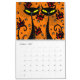 A calendar with a scary, spooky, or Halloween-theme; features different types of scary, but cute animals, sights, and objects commonly associated with spooky or Halloween