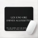 A mouse pad featuring the Latin quote "lex uno ore omnes alloquitur" which translates to "the law speaks with one mouth to all". An inspirational law quote meaning that everyone is equal before the law. Perfect for a law firm or law office. A great gift for lawyers, attorneys, barristers, solicitors, judges, legal practitioners, paralegals and law enforcement officers.