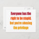 Everyone has the right to be stupid postcard