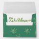 Our Everything Christmas holiday envelope perfectly matches our Everything Christmas holiday greeting card, postage stamps, return address labels, and stickers! Features a teal background with lots of cream snowflakes and with text that reads Let It Snow on the inside flap. The front features a teal background, more cream snowflakes, a cream banner where you can write your recipient's address, colourful ornaments, decorated holiday trees, and stars!