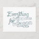 Everything Happens For A Reason is a great motivational quote to send to a friend who really needs these words right now on a postcard. This typographic design has a chalkboard look with different fonts for each word.