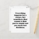 Everything happens for a reason, but sometimes that reason is that you're stupid and you make bad decisions.